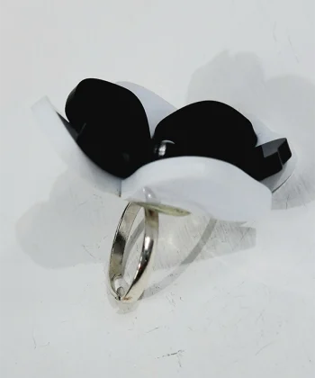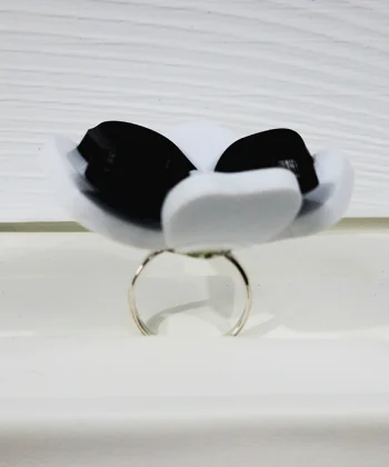 - Χειροποίητα δαχτυλίδι λουλούδι 3D σε άσπρο και μαύρο χρώμα από plexi glass.