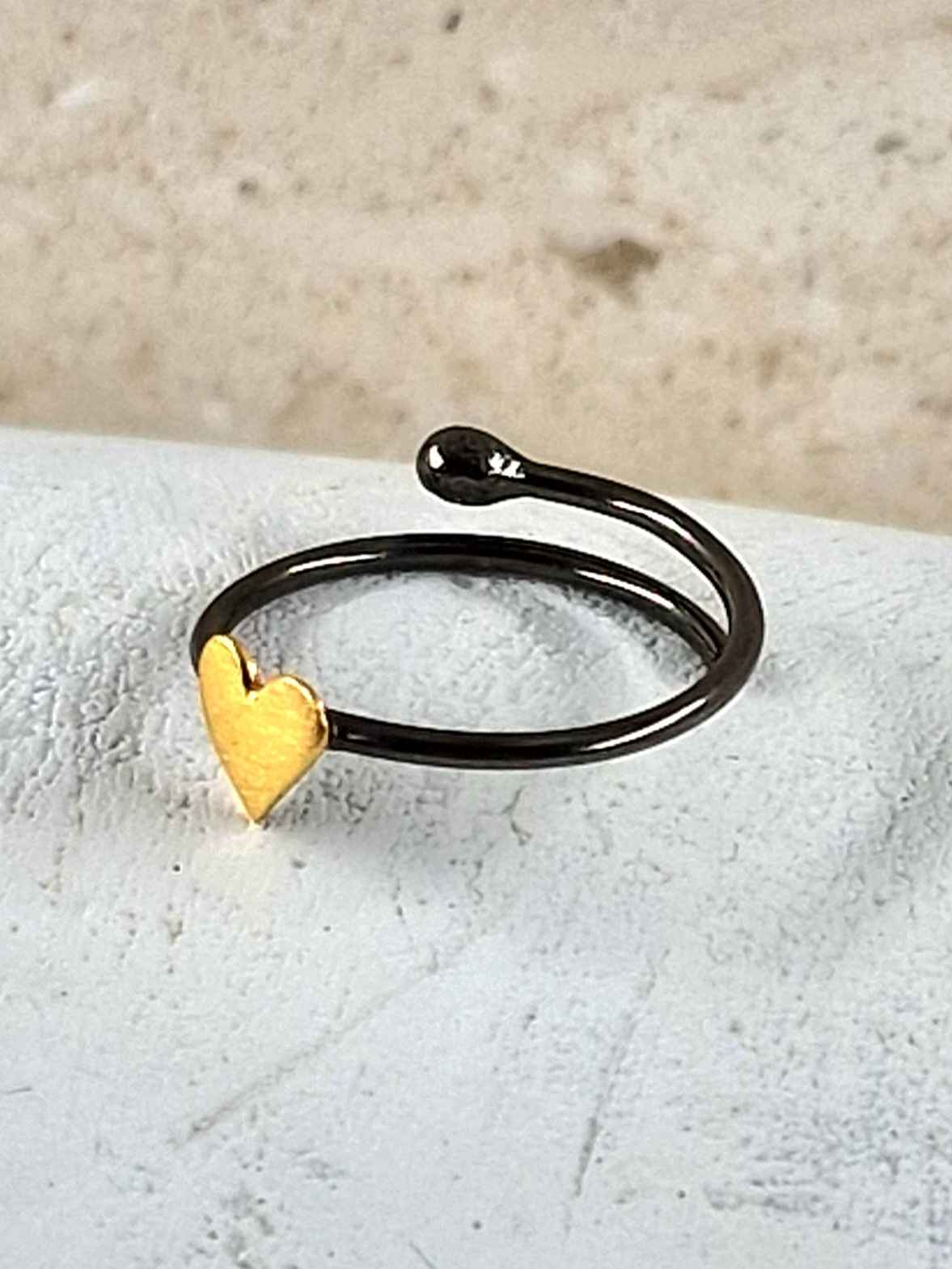 • Χειροποίητο δαχτυλίδι με μαύρο επιπλατίνωμα και  επιχρυσωμένη καρδιά.