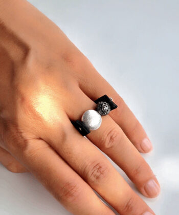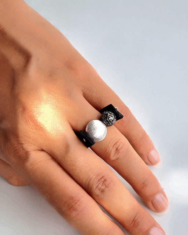 • Χειροποίητο δαχτυλίδι με ασημί και μαύρη χάντρα.