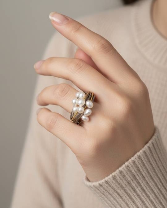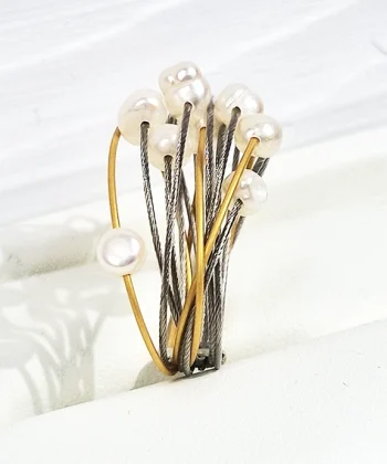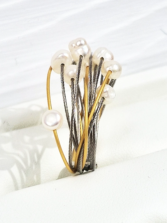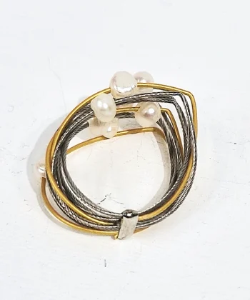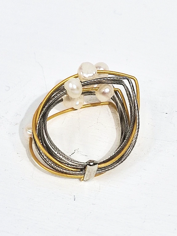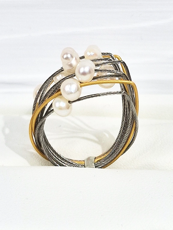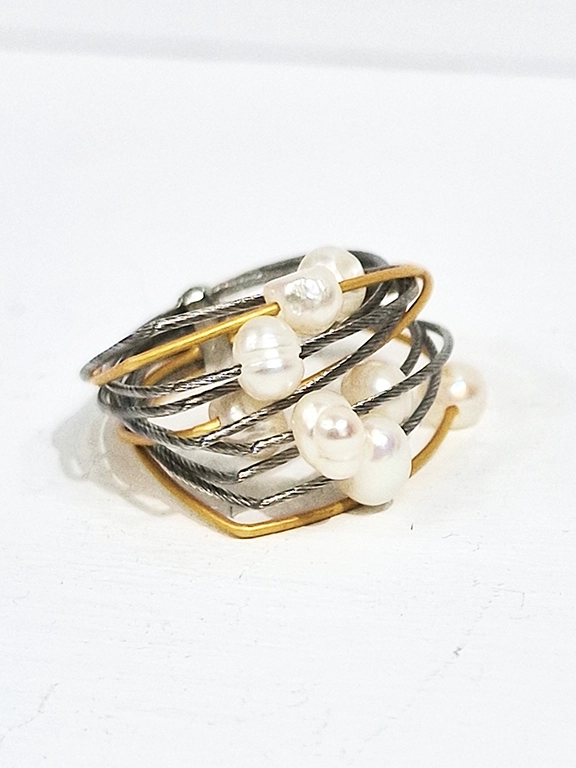 • Χειροποίητο δαχτυλίδι σταγόνα από ανοξείδωτο ατσάλι σε ασημί και χρυσό χρώμα με μαργαριτάρια του γλυκού νερού.