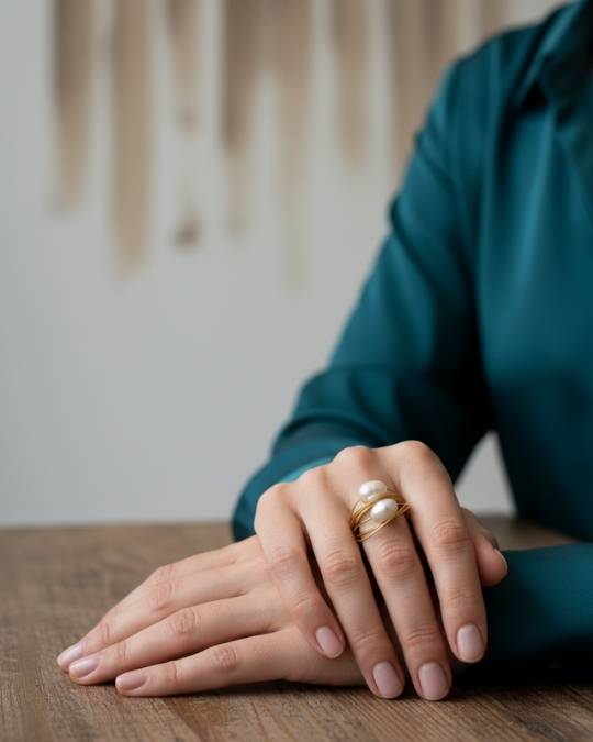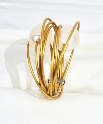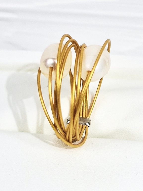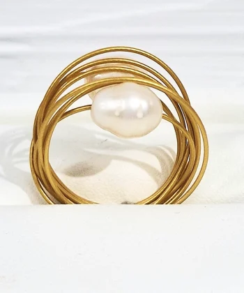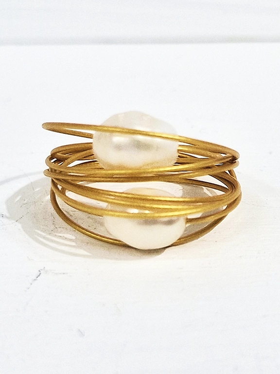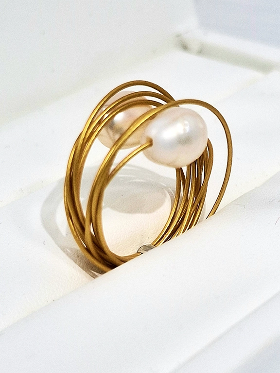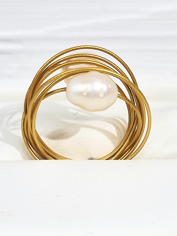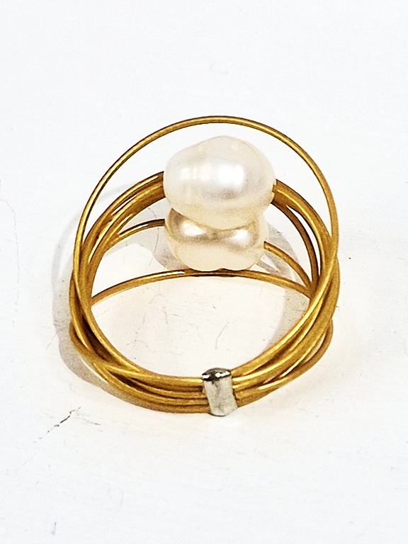 • Χειροποίητο δαχτυλίδι στρόγγυλο από ανοξείδωτο ατσάλι σε χρυσό χρώμα με μεγάλα μαργαριτάρια του γλυκού νερού.
