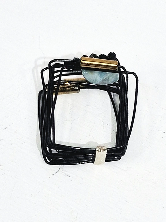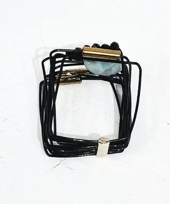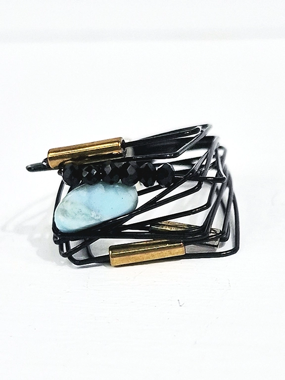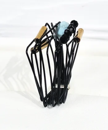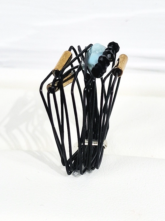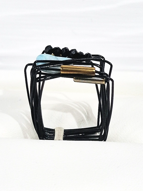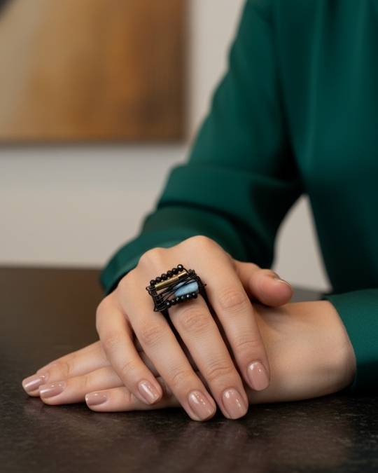 • Χειροποίητο δαχτυλίδι τετράγωνο από ανοξείδωτο ατσάλι σε μαύρο χρώμα με crystal aqua, μαύρο όνυχα και αιματίτη.