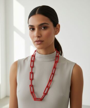 - Χειροποίητο κολιέ αλυσίδα με αποσπώμενα ορθογώνια κομμάτια σε κόκκινο χρώμα από plexi glass.