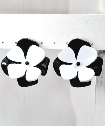 - Χειροποίητα σκουλαρίκια λουλούδι 3D σε ασπρόμαυρο χρώμα από plexi glass.