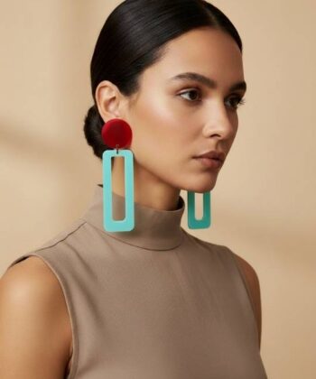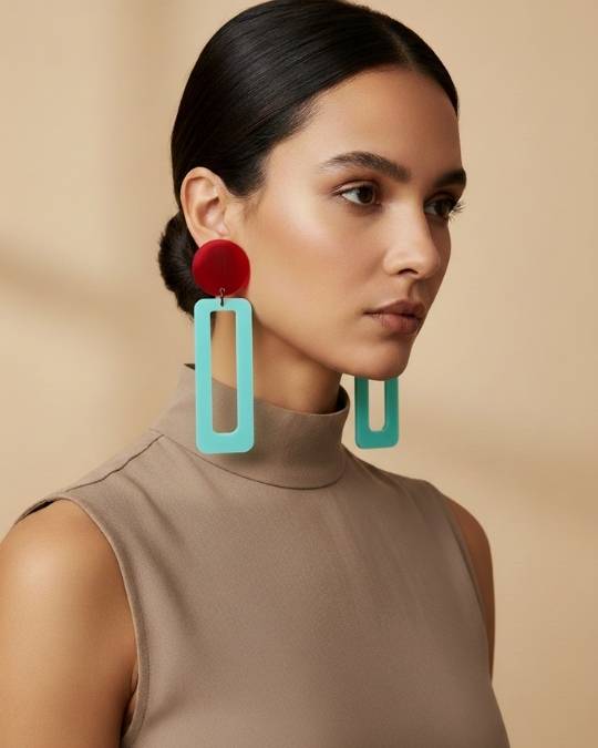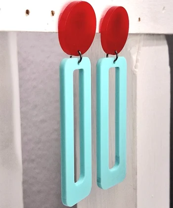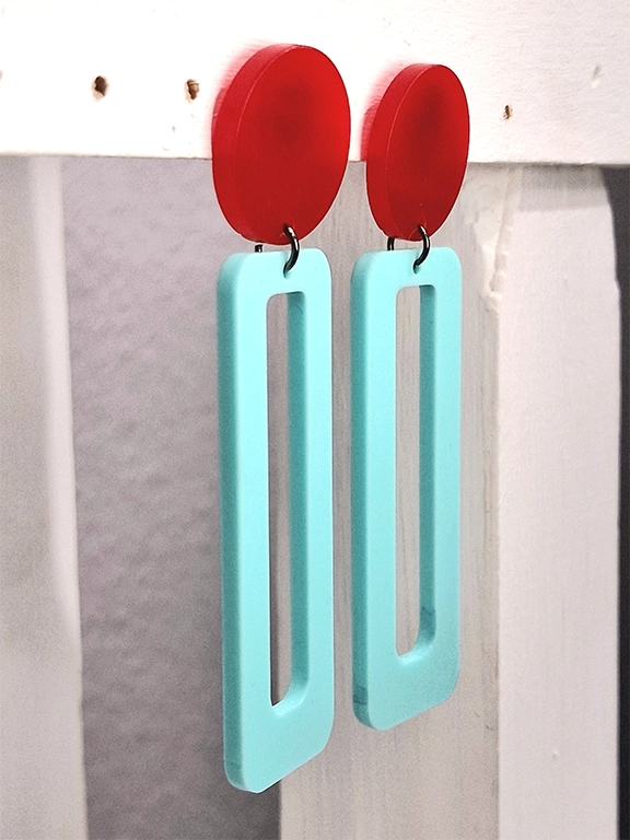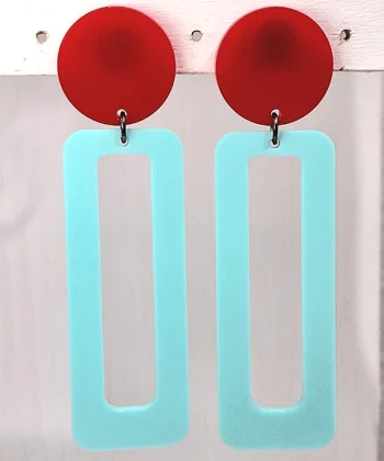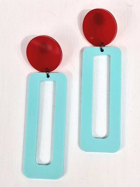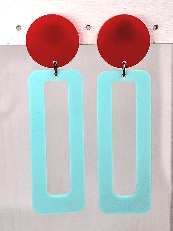 - Χειροποίητα σκουλαρίκια ορθογώνιο σε κόκκινο και γαλάζιο χρώμα από plexi glass.