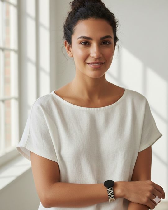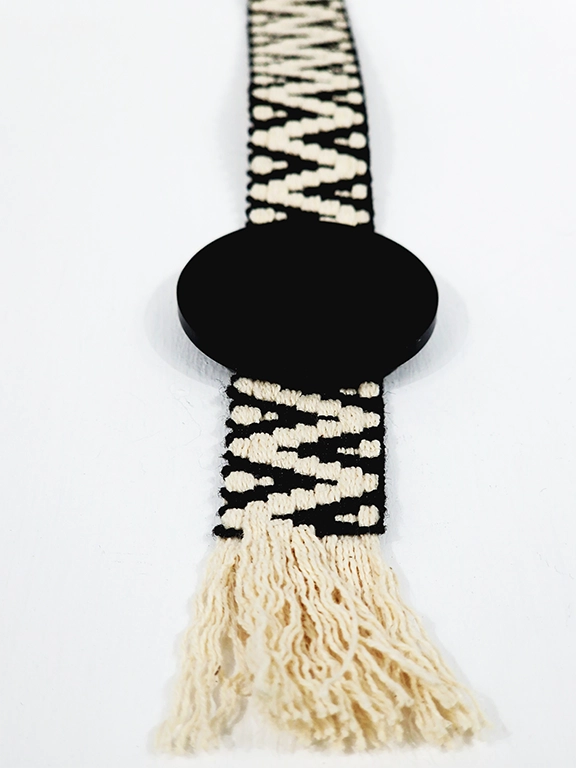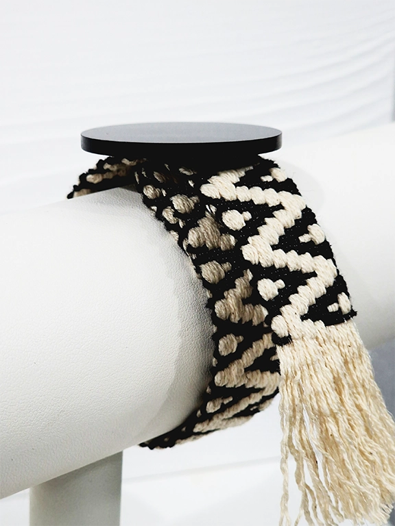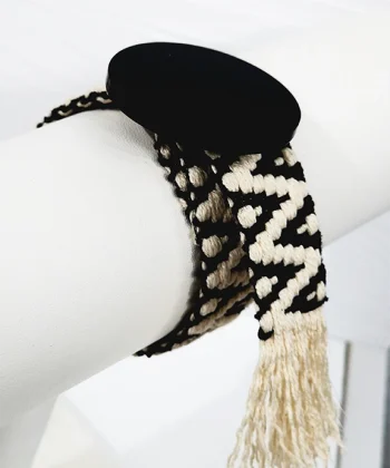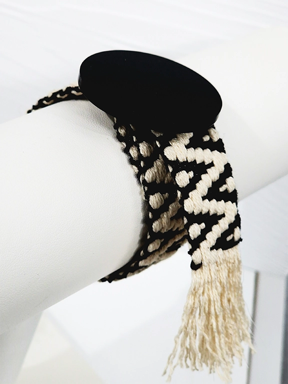 - Χειροποίητα βραχιόλι bohemian twist σε μαύρο χρώμα από plexi glass με υφαντό ασπρόμαυρο ιμάντα.