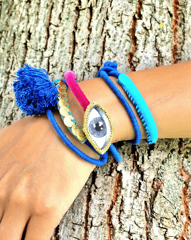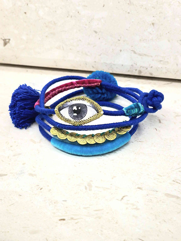 Βραχιόλι ματάκι κεντητό σε μπλε αποχρώσεις