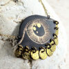 • Χειροποίητο βραχιόλι μπλε, πλεχτό τυλιχτό στο χέρι, με ματάκι κεντητό, ορειχάλκινα διακοσμητικά και κρεμαστές φούντες.
