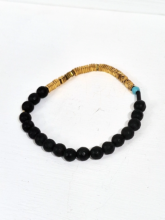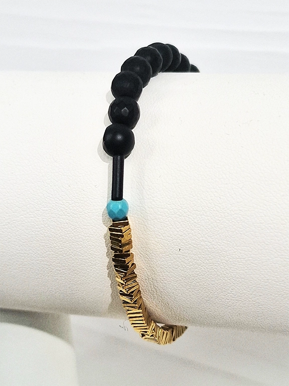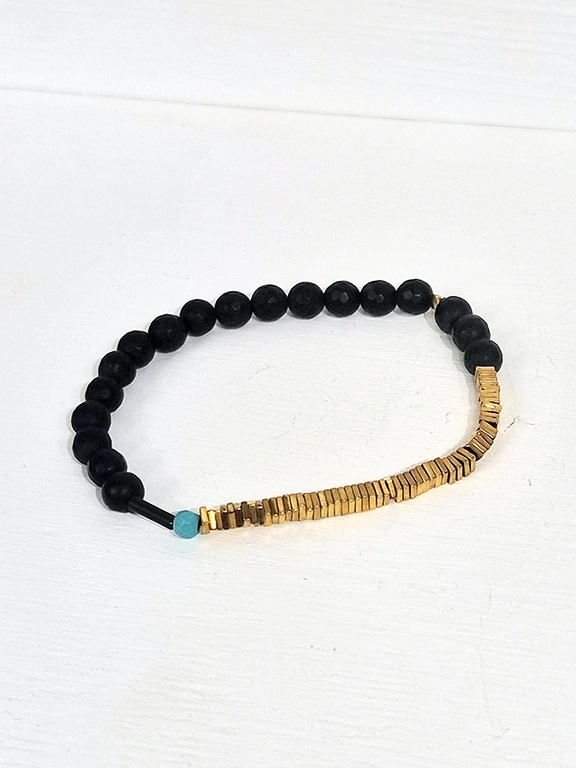 • Χειροποίητο βραχιόλι με πέτρα πάστα τυρκουάζ και χρυσό και μαύρο αιματίτη.