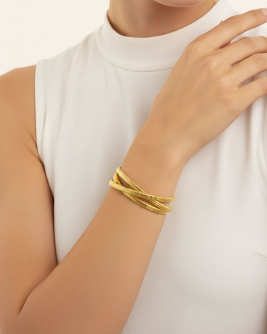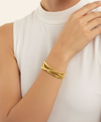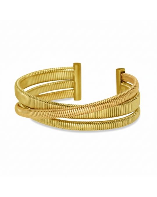 - Εντυπωσιακό βραχιόλι ανοιχτό με τρεις σταυρωτές ράβδους σε χρυσό.